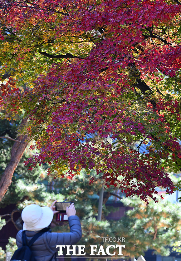 [더팩트ㅣ이동률 기자] 완연한 가을날씨를 보인 6일 오전 서울 중구 덕수궁을 찾은 시민들이 단풍을 보며 가을 정취를 느끼고 있다.기상청은 이날 서해상에서 동쪽으로 이동하는 고기압의 영향을 받아 전국이 맑고 온화한 날씨를 보일것으로 전망했다.fedaikin@tf.co.kr사진영상기획부 photo@tf.co.kr
