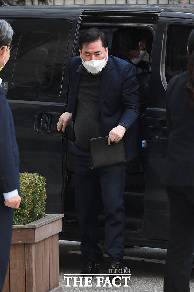 [더팩트ㅣ박헌우 인턴기자] 유동규 전 성남도시개발공사 본부장이 11일 오전 서울 서초구 서울중앙지방법원에서 열린 대장동 개발 사업 로비·특혜 의혹 관련 재판을 받기 위해 출석하고 있다.