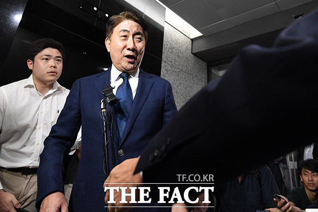 [더팩트ㅣ과천=남용희 기자] 이동관 방송통신위원회 위원장 후보자가 8일 오후 경기도 과천시 정부과천청사 인근에 마련된 사무실로 출근하며 취재진의 질문을 듣고 있다.