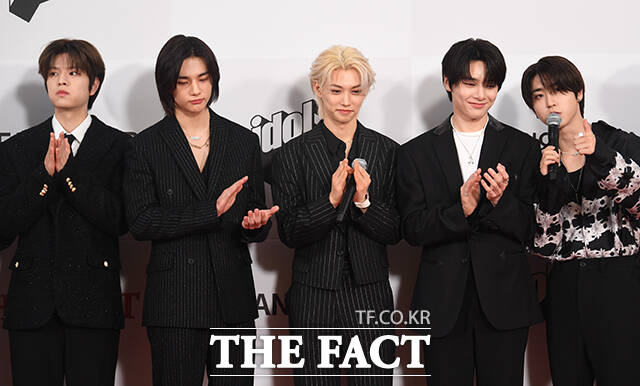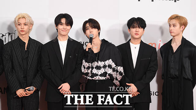 [더팩트ㅣ인천남동체육관=이새롬·남용희·이동률 기자] 아티스트와 팬이 함께 만들고 즐기는 K-POP 축제 '2023 더팩트 뮤직 어워즈'가 10일 오후 인천 남동구 수산동 인천남동체육관에서 화려한 막을 올린 가운데 그룹 스트레이키즈의 리노와 승민, 현진, 필릭스, 아이엔, 한, 서창빈, 방찬(왼쪽부터)이 레드카펫을 밟고 있다.