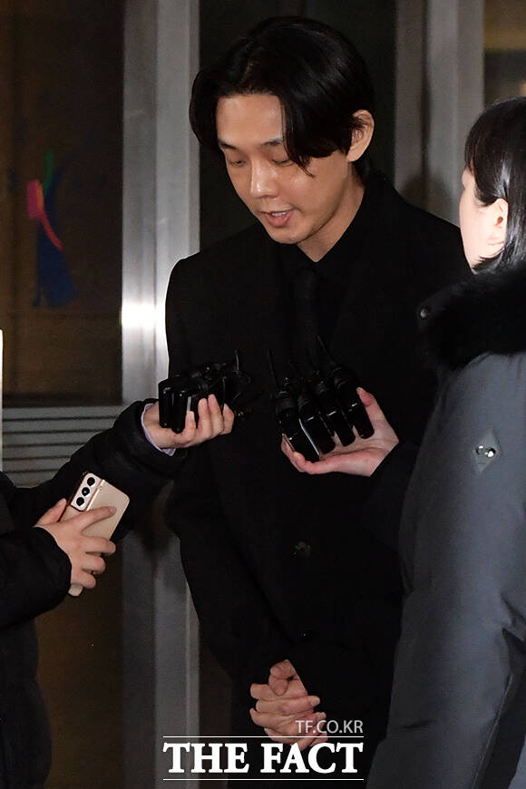 [더팩트ㅣ서예원 기자] 대마와 프로포폴 등 마약을 상습 투약한 혐의를 받는 배우 유아인이 12일 오전 서울 서초구 서울중앙지법에서 열린 첫 공판을 마치고 법원을 나서고 있다.
