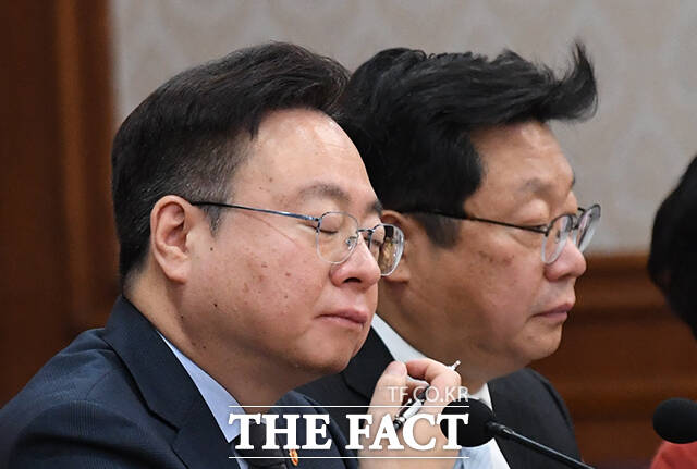[더팩트ㅣ임영무 기자] 조규홍 보건복지부 장관(왼쪽)이 12일 오전 서울 종로구 정부서울청사에서 열린 국무회의에 참석해 한덕수 국무총리의 발언을 들으며 생각에 잠겨 있다.