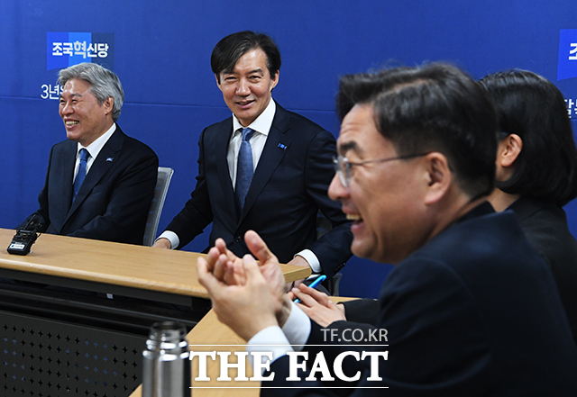[더팩트ㅣ배정한 기자] 조국혁신당 원내대표 선출을 위한 당선인 총회가 25일 서울 여의도 중앙당사에서 열린 가운데 조국 대표(왼쪽 두번째)가 당선인들과 대화를 하고 있다.