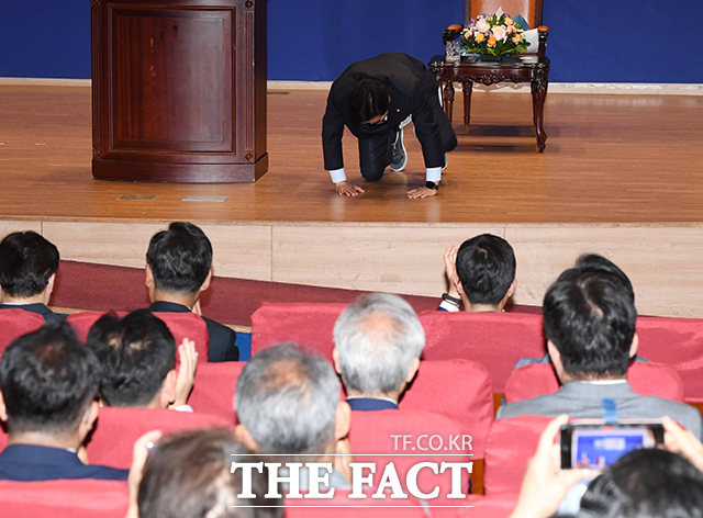 [더팩트ㅣ국회=배정한 기자] 박찬대 더불어민주당 신임 원내대표가 3일 오전 서울 여의도 국회의원회관에서 열린 제22대 국회 더불어민주당 제1기 원내대표 선출 당선자 총회에 참석해 큰절을 하고 있다.