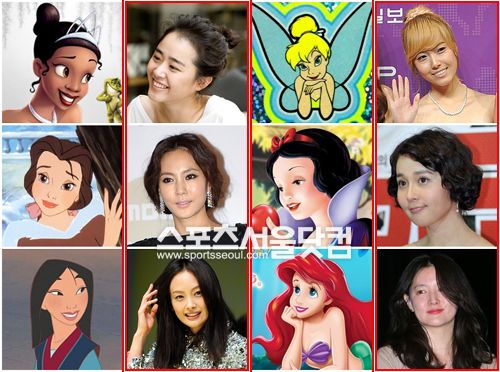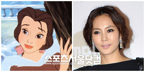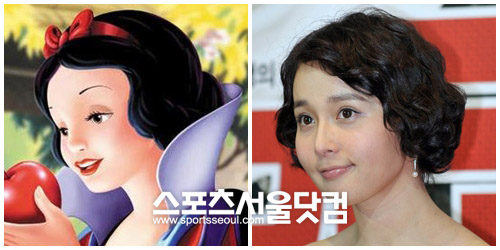 만화 속 공주 캐릭터와 여스타들은 쌍둥이처럼 닮은 경우가 많다. 또렷한 이목구비와 유달리 큰 눈 때문이다. 헤어스타일이 같으면 더욱 흡사해 보인다. 서로 비슷한 분위기가 형성되면서 얼굴까지 똑같아 보인다.