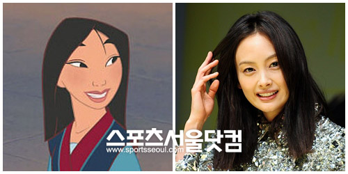 뮬란은 다소 동양적인 외모다. 반면 이나영은 서구형 얼굴을 지녔다. 하지만 단정하게 연출한 생머리는 둘의 분위기를 흡사하게 만드는데 가장 큰 역할을 했다. 이목구비는 아니었지만 참한 분위기는 부인할 수 없이 닮아 있었다.
