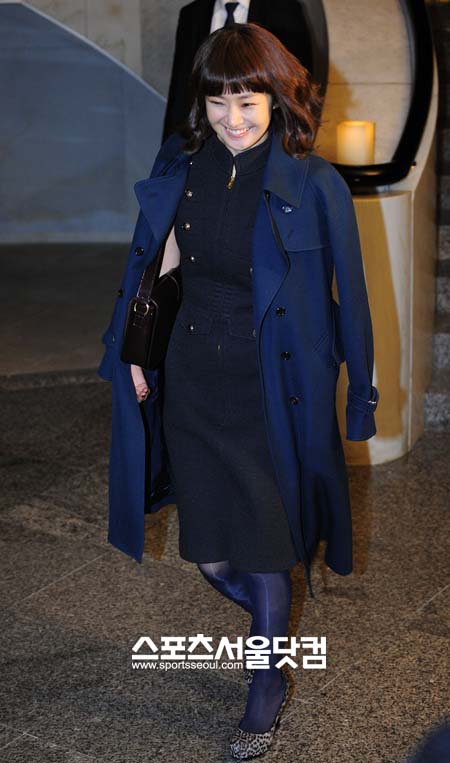 원조 패셔니스타 김혜수는 엣지있는 하객 패션을 선보였다. 그는 언발란스한 가슴선의 검은색 오프숄더 드레스를 입었다. 여기에 붉은색 코드를 걸쳤다. 구는 코트와 색을 통일해 안정감을 줬다.