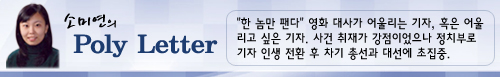두 후보에 대한 국민들의 엇갈린 평가를 몸으로 느끼고 있지만, 단 한 가지 변함없는 사실이 있다. 바로 김경수 봉하재단 사무국장과 조윤선 전 새누리당 의원에 대한 '인기'다. 두 사람은 각각 문 고문과 박 전 위원장의 캠프에서 활동 중이다.