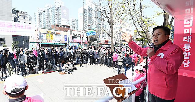 [더팩트ㅣ이새롬 기자] 4.15 총선에서 종로구에 출마한 황교안 미래통합당 대표가 3일 오전 서울 종로구 창신동 일대에서 유세차에 올라 발언하고 있다.