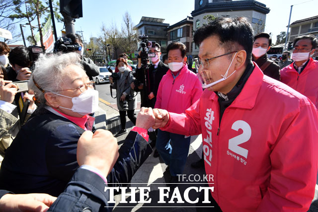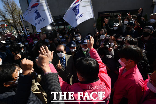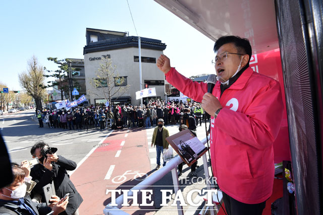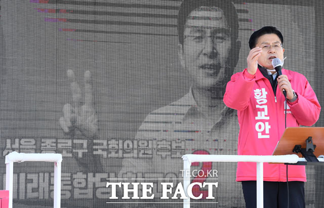 [더팩트 | 남윤호 기자] 미래통합당 서울 종로 황교안 후보(가운데)가 4일 오후 서울 종로구 재동초등학교 앞에서 열린 유세 현장에서 자신의 저서를 가지고 온 학생에게 사인을 해주고 있다.