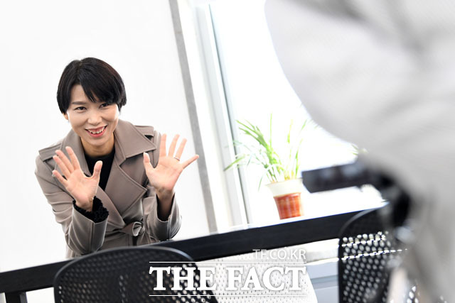 [TF포토] 유튜브 촬영하는 김정화 공동대표