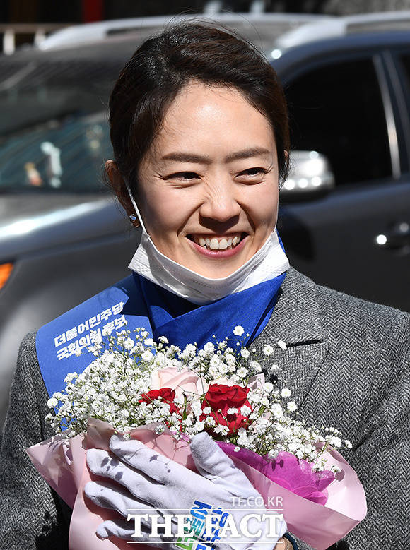 고민정 후보는 제21대 국회의원선거에서 '강한 여당' 슬로건을 걸고 서울시장 출신인 오세훈 미래통합당 후보와 광진을에서 경쟁을 벌이고 있다.