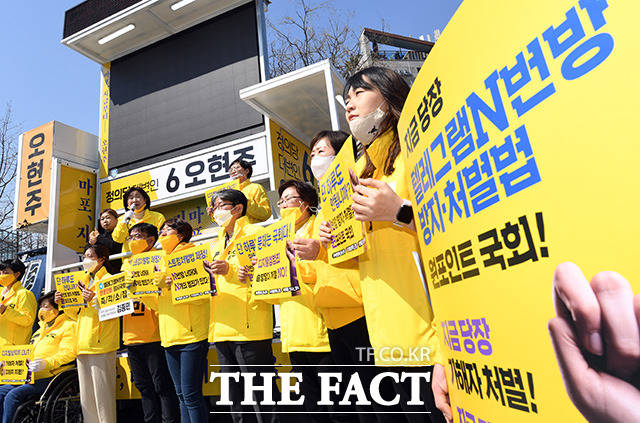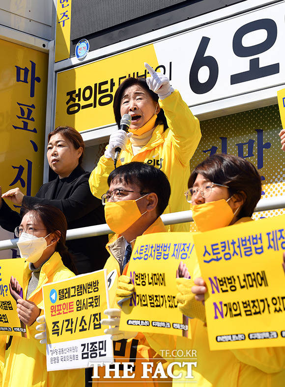 [TF사진관] 심상정, '총선 유세보다 N번방 입법 촉구가 먼저다!'
