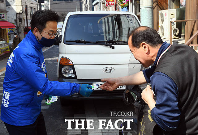 [TF사진관] '골목 민심 잡아라'...지지 호소하는 박성준 후보