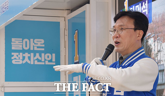 [더팩트ㅣ이덕인 기자] 4.15 총선 서울 영등포을에 출마한 김민석 더불어민주당 후보가 6일 오후 서울 영등포구 대림로 일대에서 유세 차량을 타고 유권자들에게 지지를 호소하고 있다.thelong0514@tf.co.kr사진영상기획부 photo@tf.co.kr