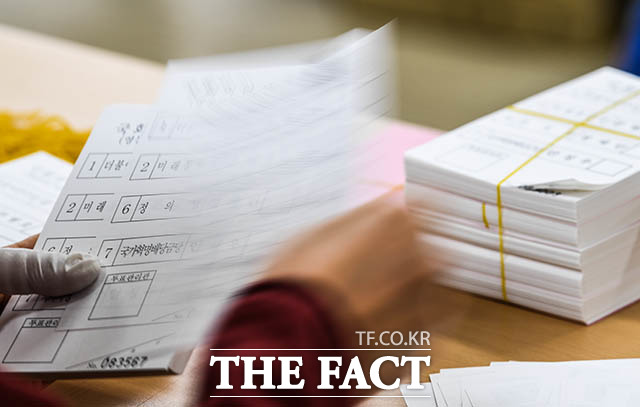 [더팩트ㅣ김세정 기자] 4.15 총선 사전투표일을 사흘 앞둔 7일 오전 서울 영등포구선거관리위원회에서 관계자들이 제21대 국회의원 선거 투표용지를 검수하고 있다.sejungkim@tf.co.kr사진영상기획부 photo@tf.co.kr