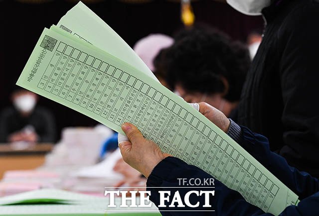[더팩트ㅣ김세정 기자] 4.15 총선 사전투표일을 사흘 앞둔 7일 오전 서울 영등포구선거관리위원회에서 관계자들이 제21대 국회의원 선거 투표용지를 검수하고 있다. 15일에 치러질 이번 총선에서 비례대표 참여 정당은 35곳이며, 정당투표 용지 길이는 48.1cm가 됐다.sejungkim@tf.co.kr사진영상기획부 photo@tf.co.kr