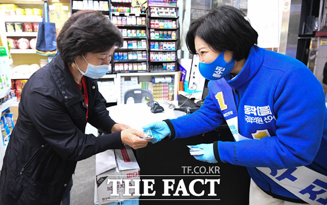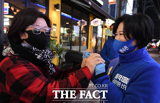 [더팩트ㅣ임세준 기자] 4.15총선 서울 동작구을에 출마 중인 더불어민주당 이수진 후보가 8일 오후 서울 동작구 사당1동 일대에서 주민들을 직접 만나며 지지를 호소하고 있다.
