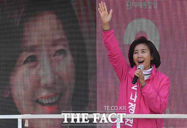 [더팩트ㅣ이새롬 기자] 제 21대 국회의원 선거에서 동작구을에 출마한 나경원 미래통합당 후보가 9일 오후 서울 동작구 흑석동에서 유세차에 올라 발언하고 있다.