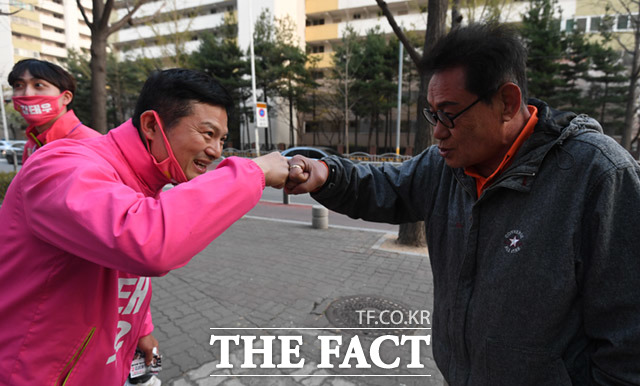 [더팩트ㅣ임세준 기자] 4.15총선 서울 강서구을에 출마 중인 미래통합당 김태우 후보가 9일 오후 서울 강서구 방화역 인근에서 직접 주민들을 만나며 지지를 호소하고 있다.