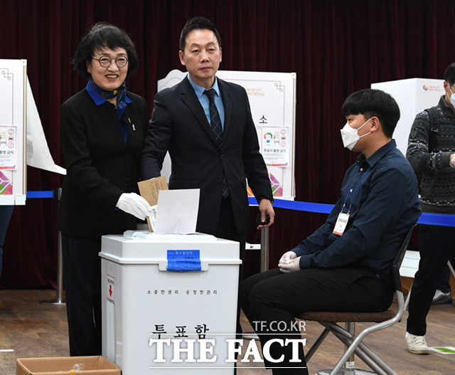 [TF사진관] 4.15총선 사전투표하는 정봉주-김진애