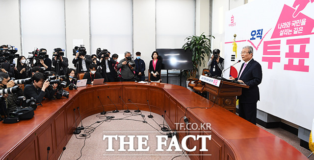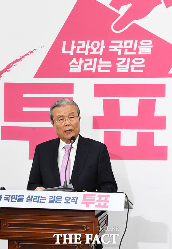 [더팩트ㅣ국회=배정한 기자] 김종인 미래통합당 총괄선거대책위원장이 4·15 총선을 하루 앞둔 14일 오전 서울 여의도 국회에서 진행된 대국민 기자회견에 참석해 발언을 하고 있다.