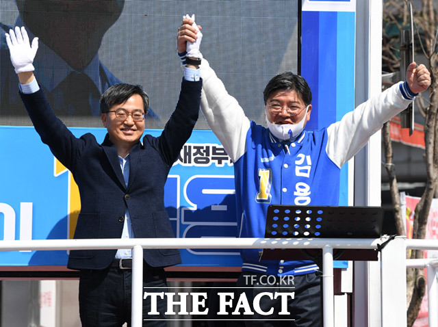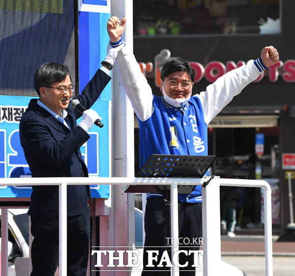 [TF사진관] '옛 동료 지원유세 나선 김동연 전 경제부총리'