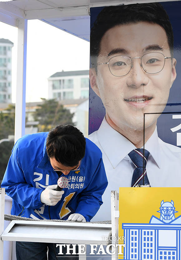 [더팩트ㅣ안산=남용희 기자] 제21대 국회의원선거 안산 단원을에 출마하는 김남국 더불어민주당 후보(왼쪽)와 박순자 미래통합당 후보가 14일 오후 경기도 안산시 단원구 별망초교사거리 일대에서 유권자들에게 지지를 호소하고 있다.