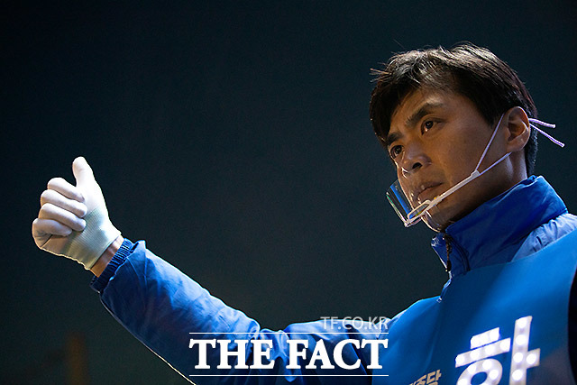 [더팩트ㅣ이효균 기자] 14일 오후 경기 고양시 행신동 사거리에서 한준호 더불어민주당 고양시(을) 국회의원 후보가 선거운동을 하고 있다. 한 후보는 공식선거운동 기간 동안 1일 5만 보, 총 65만 보 걸어 시민과 함께 하는 합동유세로 13일 간의 공식선거운동을 마무리 지었다.
