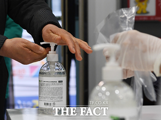 [더팩트ㅣ배정한 기자] 제21대 국회의원 선거일인 15일 오전 서울 서대문구 연희동 주민센터에 마련된 연희제1투표소에서 유권자들이 투표를 하기 전 손 소독을 하고 있다. hany@tf.co.kr 사진영상기획부 photo@tf.co.kr