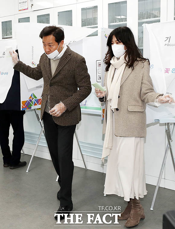 [TF포착] '격전지 광진을' 투표 마친 고민정-오세훈