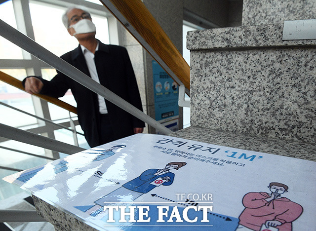 [더팩트ㅣ이동률 기자] 제21대 국회의원 선거날인 15일 오전 서울 동작구 사당 제1동 제5투표소를 찾은 시민들이 '사회적거리두기'를 실천하며 대기하고 있다.