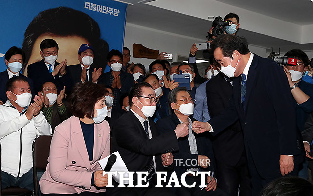 [TF사진관] 당선 확실시 되자 선거 캠프 찾은 이낙연