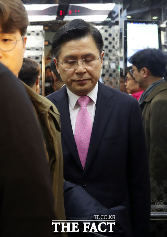 [TF사진관] '사퇴' 발표 후 고개숙인 황교안