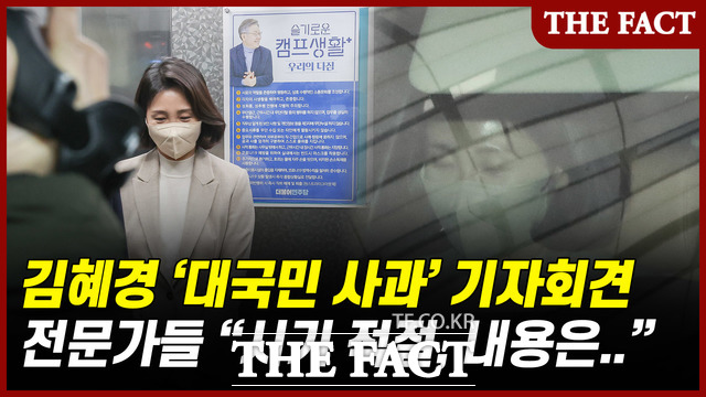 [더팩트ㅣ김연수 기자] 이재명 더불어민주당 대선 후보의 부인 김혜경 씨가 지난 9일 공무원 갑질·법인카드 유용 논란과 관련해 "국민 여러분들께 특히 제보자 당사자꼐 진심으로 사과드린다"고개 숙여 사과했습니다.