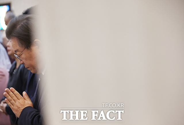 [더팩트ㅣ인천=장윤석 기자] 제22대 총선 인천 계양을에 출마한 이재명 더불어민주당 대표(가운데)가 31일 오전 인천 계양구 서운동성당에서 열린 부활절 미사에 참여하고 있다.