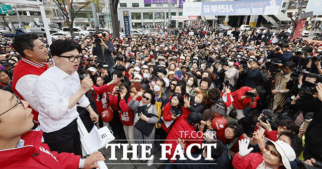 '사전투표 D-1' 한동훈 "투표 꼭 참여해달라"…김병민-오신환 지원사격 [TF사진관]