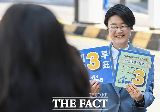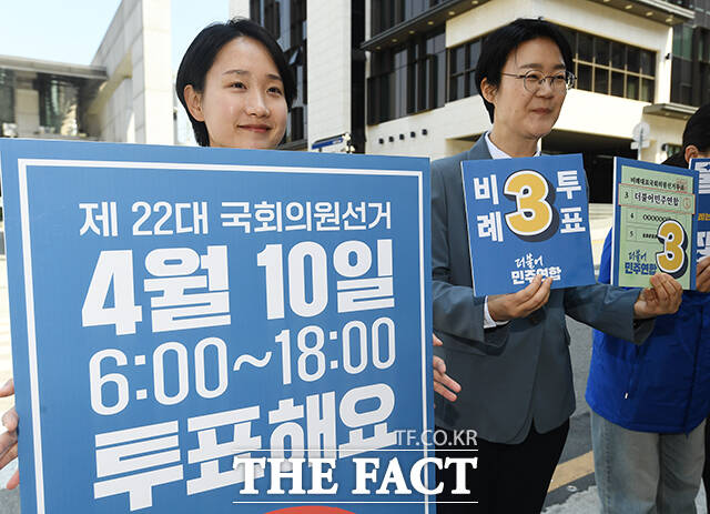 [더팩트ㅣ장윤석 기자] 윤희숙 진보당 상임대표를 비롯한 관계자들이 4·10 총선을 하루 앞둔 9일 오전 서울 서대문구 이화여대 앞에서 청년 투표 독려 및 더불어민주연합 지지를 호소하고 있다.