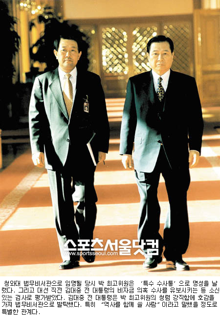 박 최고위원의 ‘소신’은 김대중 전 대통령의 눈에 띄었다. 단 한 번도 일면식이 없었던 박 최고위원을 법무비서관으로 임명했다. 이를 계기로 박 최고위원은 정부 요직 인사의 검증과 추전을 하는 공직기강 업무를 맡았다. 인사문제로 홍역을 치를 당시 박 최고위원은 정치권 실세와 대통령 아들로부터의 인사 청탁도 단호히 배제함으로써 “굴러온 돌이 박힌 돌을 빼낸다”고 볼멘소리를 듣기도 했다. 그렇지만 김 전 대통령은 그의 소신을 믿었고, 결국 그의 말을 따르기도 했다.