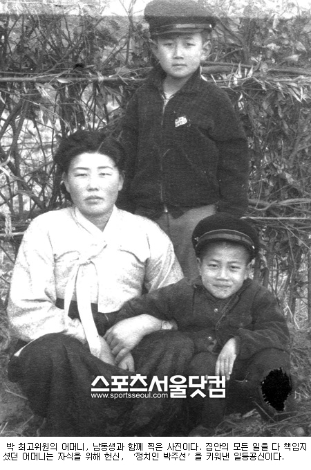박 최고위원에게 어머니는 ‘정신적 지주’다. 어머니에 대한 얘기만 나와도 눈물을 보이는 이유도 파출부, 과일, 쌀, 달걀 장사 등을 하면서 산전수전을 다 겪었던 추억이 새록새록 떠오르기 때문이다. “중학교 입학할 때 돈이 없었어요. 어머니는 등록금 1천1백원을 마련하기 위해 병원에서 피를 팔았어요. 게다가 새벽 4시에 광주행 통학열차를 통해 장사를 하시던 어머니 모습은 지금도 생생해요. 탁송료 등을 내기 싫어 통행금지 시간이 풀리기 전에 역사에 가서 쌀, 채소, 달걀 등을 미리 차에 실었어요. 한 번은 통행금지 해지가 되지 않은 상태에서 통행을 했다는 이유로 파출소에 붙잡히기도 했어요. 경찰관에게 어려운 사정을 말하자 파출소에서 양해를 해주기도 했죠. 어머니는 자식들을 위해서 정말 독하게 사셨던 것 같아요.”박 최고위원은 어머니의 희생정신을 생생하게 기억하고 있었다. 그래서인지 그는 정상궤도에서 일탈하지 않고, 공부만 할 수밖에 없었다고 한다.