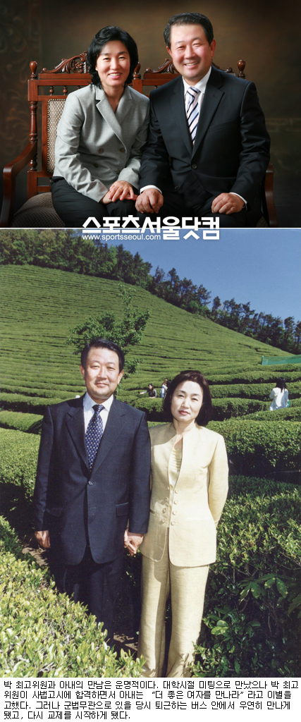 그리고 3년이라는 시간이 흘렀다. 의정부에서 군법무관으로 일했던 그는 우연히 버스 안에서 아내를 만났다. 좋은 기회를 놓치면 안된다는 생각에 박 최고위원은 여러 차례 구애를 했고, 결국 아내는 승낙을 했다. 그러나 결혼은 쉽지 않았다고 한다. “장모님이 장남한테는 진저리가 나 딸을 줄 수 없다는 거예요. 그래서 장모님을 수차례 만나서 설득에 설득을 했더니 겨우 승낙해주시더라고요. 그런데 지금 생각해보면 미안해요. 저를 만나지 않고 다른 남자를 만났다면 힘든 인생을 살지 않았을텐데…. 그래서인지 아내에게는 정말 미안해요. 이러한 어려움을 모두 다 극복해줬음에도 불구하고 제가 신경을 못 쓰거든요. 오죽했으면 아내가 ‘지금 하는 일에 1천분의 1만 가족에게 해도 최고의 가장이 될텐데…’라고 하겠어요.”