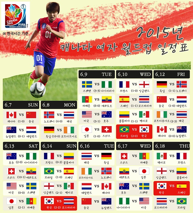 [TF인포그래픽] 2015 캐나다 여자 월드컵 캘린더(7일차)