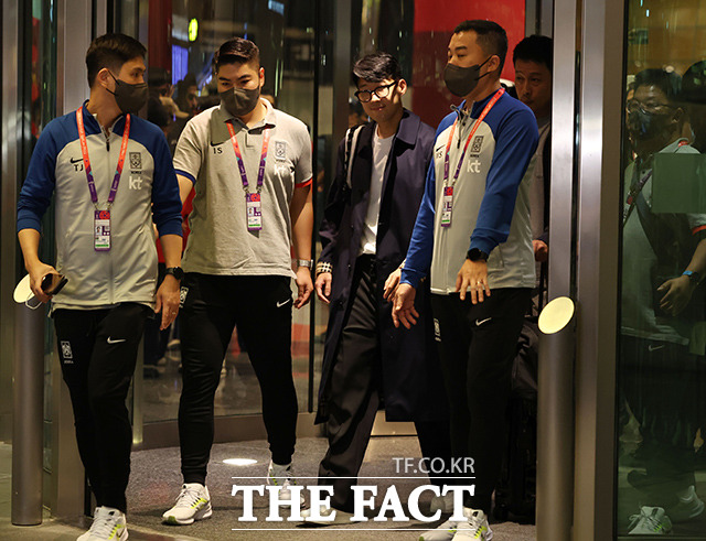 [더팩트|이선화 기자] 경기 중 안와골절 부상으로 수술을 받았던 대한민국 축구대표팀 주장 손흥민이 이날 새벽 카타르에 입성했다.