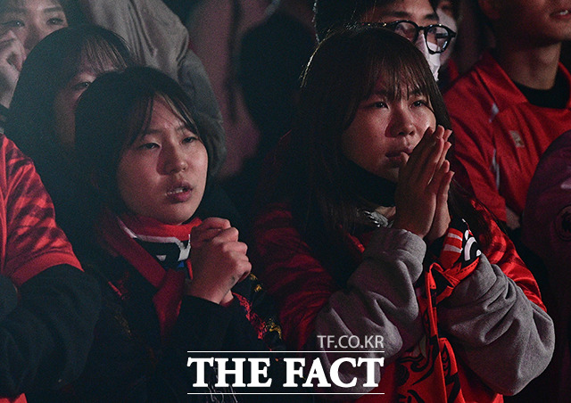 [월드컵 사진관] '우루과이 상대로 선방한 대한민국'...목청껏 응원한 붉은악마