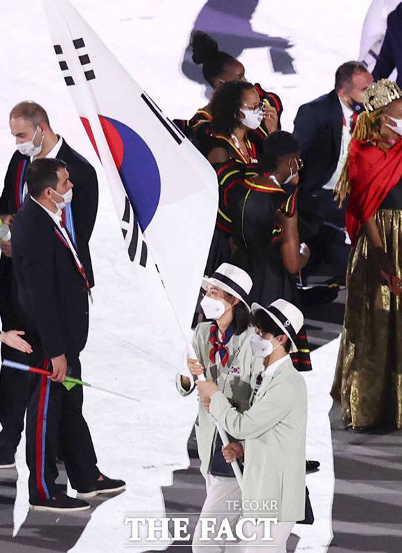 [더팩트ㅣ이새롬 기자] 김연경 선수와 황선우를 선두로 한 대한민국 선수단이 23일 일본 도쿄 올림픽 올림픽 스타디움에서 열린 2020 도쿄올림픽 개막식에 입장하고 있다.