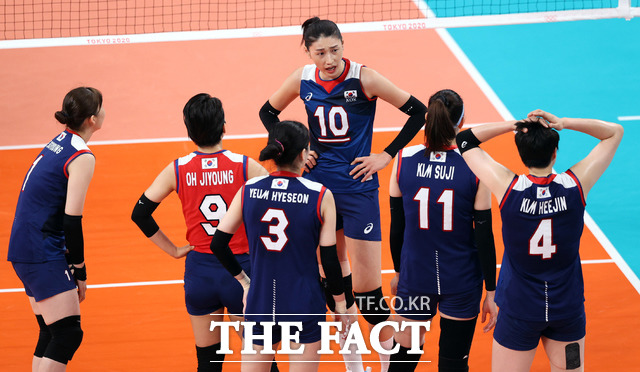 [더팩트ㅣ이동률 기자] 김연경을 포함한 여자배구 대표팀이 31일 오후 도쿄 아레나에서 열린 '2020 도쿄올림픽' 여자배구 예선 A조 일본과의 경기에서 치열한 경기를 펼치고 있다.