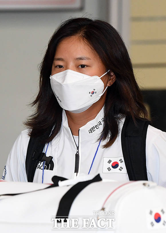 [더팩트ㅣ인천국제공항=임영무 기자] 2020 도쿄 올림픽 여자 골프 대표팀 고진영이 올림픽을 마치고 8일 오후 인천국제공항으로 귀국하고 있다.