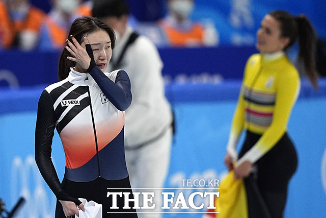 [더팩트ㅣ남윤호 기자] 최민정이 11일 오후 중국 베이징 캐피털 실내경기장에서 열린 2022 베이징동계올림픽 쇼트트랙 여자 1000m 결승전에서 은메달을 획득한 뒤 눈물을 흘리고 있다.