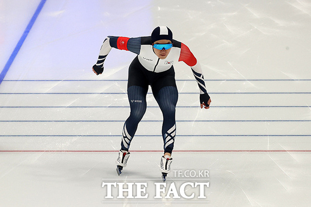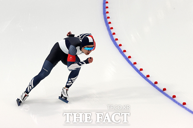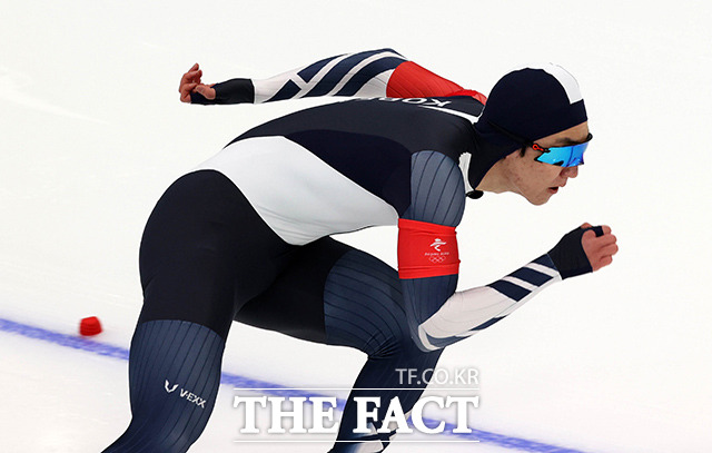 [더팩트|이선화 기자] 한국 스피드스케이팅 국가대표 차민규가 12일 중국 베이징 국립 스피드스케이팅 경기장에서 열린 '2022 베이징 동계올림픽' 스피드 스케이팅 500m 경기에서 역주하고 있다.