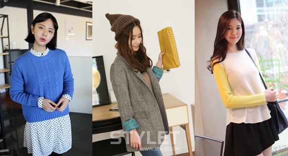 ` 소녀풍의 러블리한 디자인으로 상큼한 컬러가 돋보이는 이중 레이어드 니트. 상품 바로가기